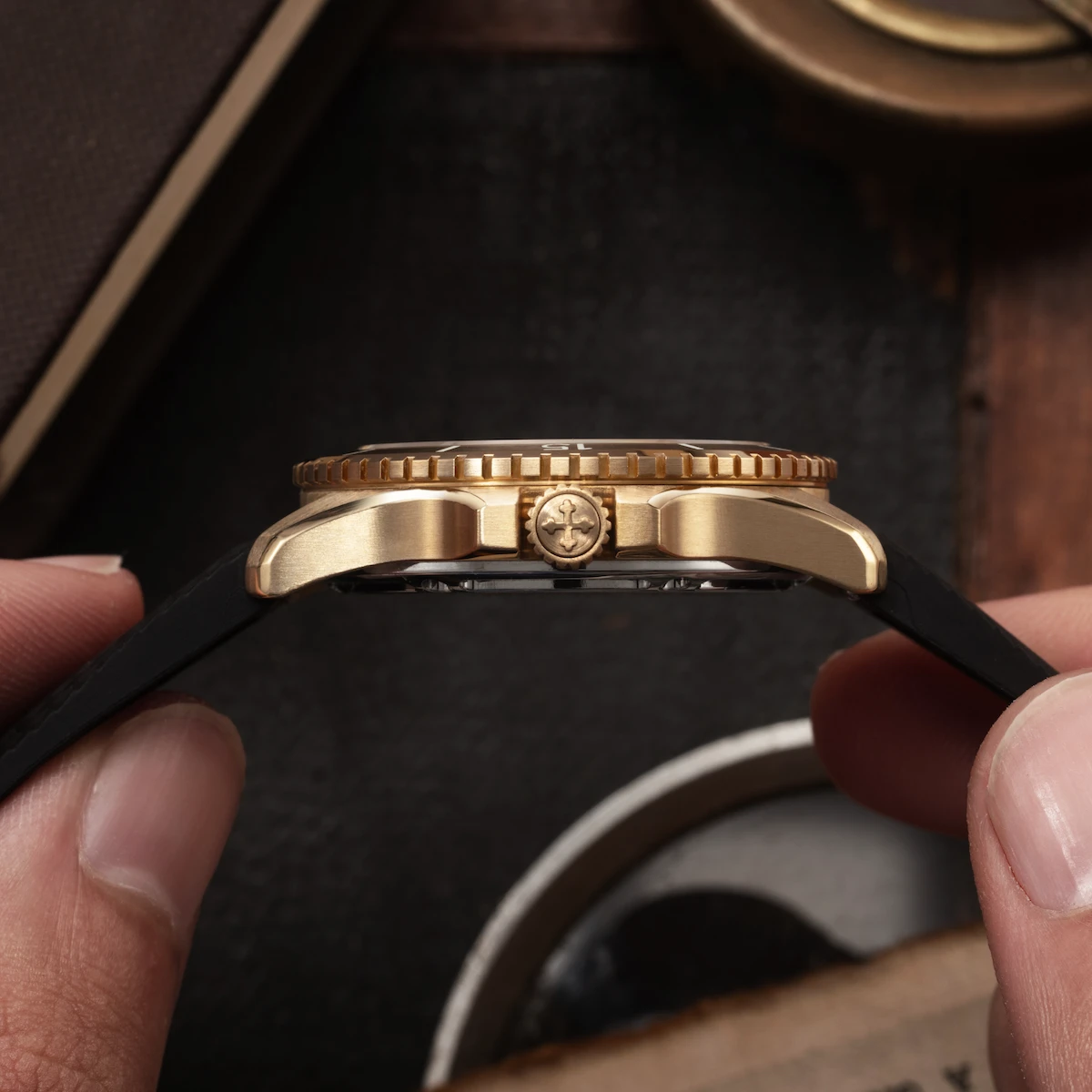 The Nereide Bronzo, inspired by the metal of the famous Horses of St. Mark, embodies the timeless charm of this material, an essential part of the history of Venetian craftsmanship. The case, carefully finished, evolves over time, developing a unique patina that tells endless stories.