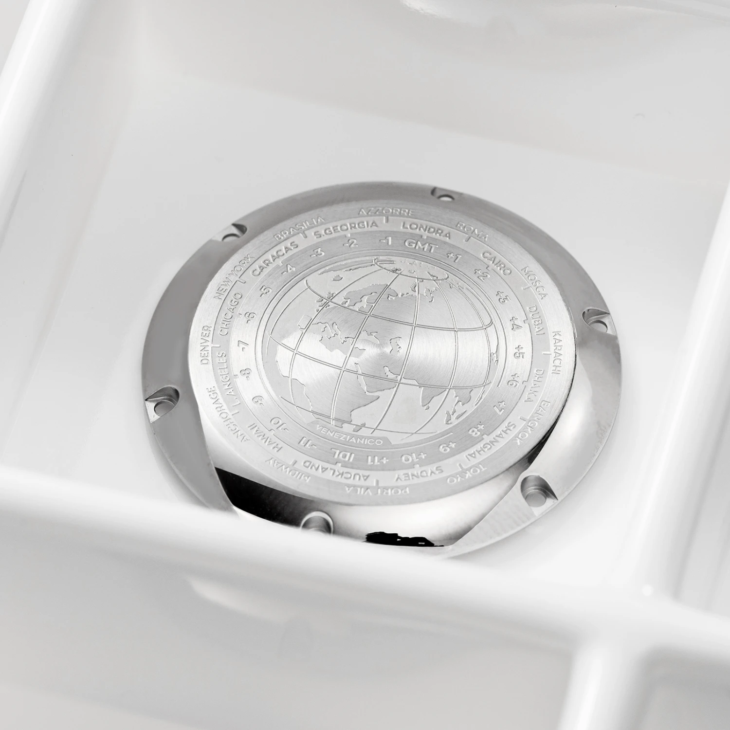 Designed for those who travel the world with a pioneering spirit, our GMT watch perfectly embodies the sophistication of adventure. Drawing inspiration from the Nereide submarine, it blends refined design with the benefit of dual-time functionality. A true ally for modern globetrotters, it captures the essence of elegance in motion.