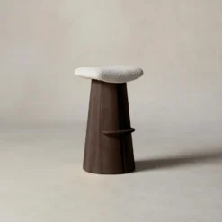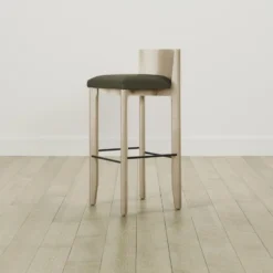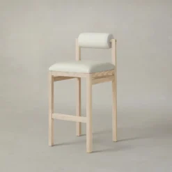 The Thayer Bar & Counter Stool – Pebbled Leather Swan Seat Italian Bouclé White Bolster