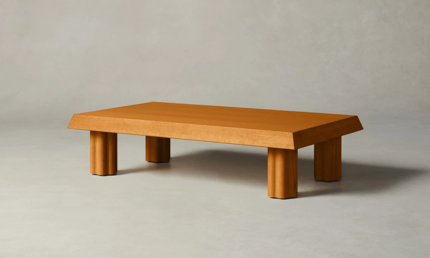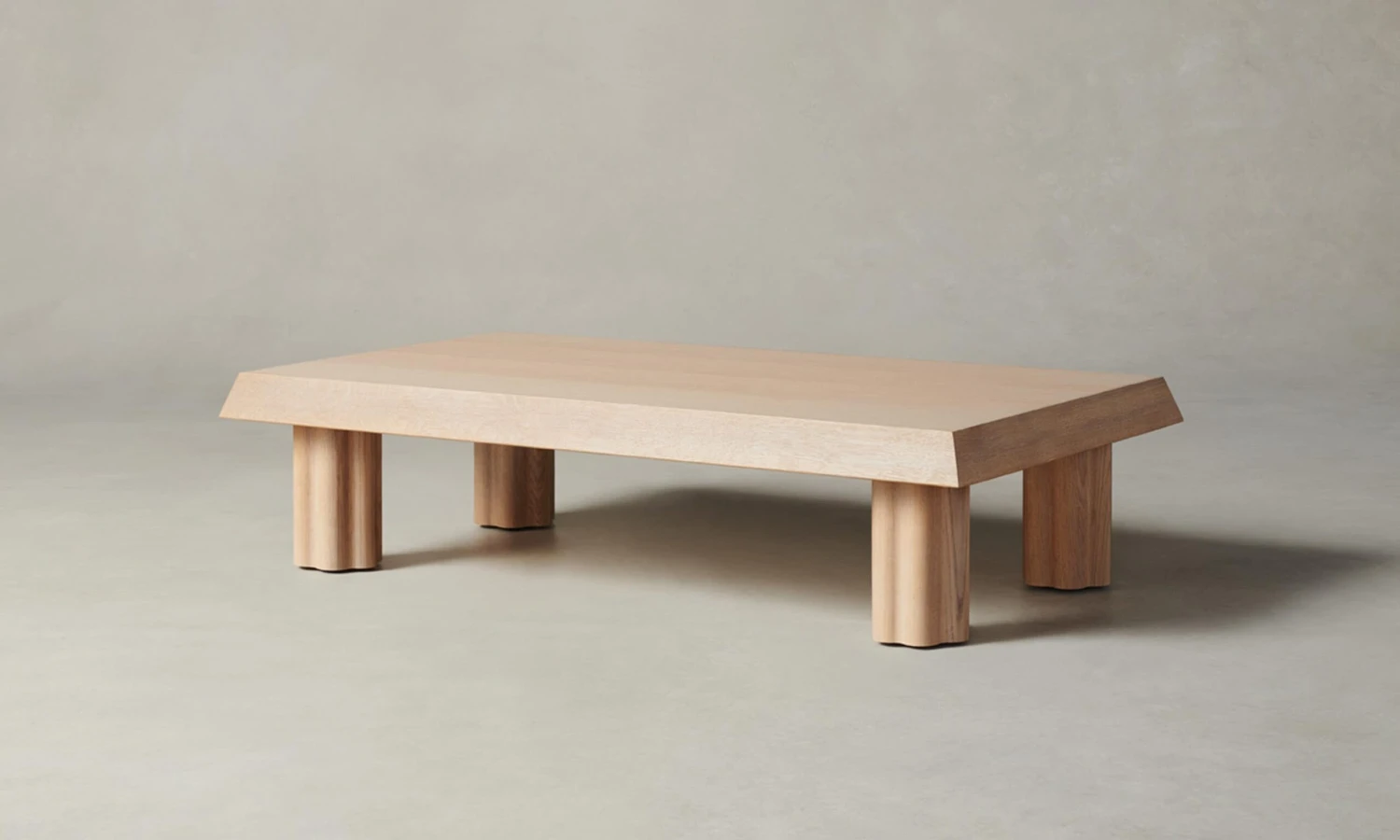The Dean rectangular coffee table is a display of masterful woodcraft. Bringing together sharp lines and smooth curves, it boasts a beveled-edge tabletop and fluted column legs. Handcrafted at a family-owned workroom in upstate New York.