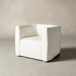 The Eldridge bed establishes a laid-back ambience in the bedroom with its low-lying silhouette and generous proportions. Fully upholstered and cushioned all around, it has an extended headboard and linear form traced with flange seams. Handcrafted in North Carolina.