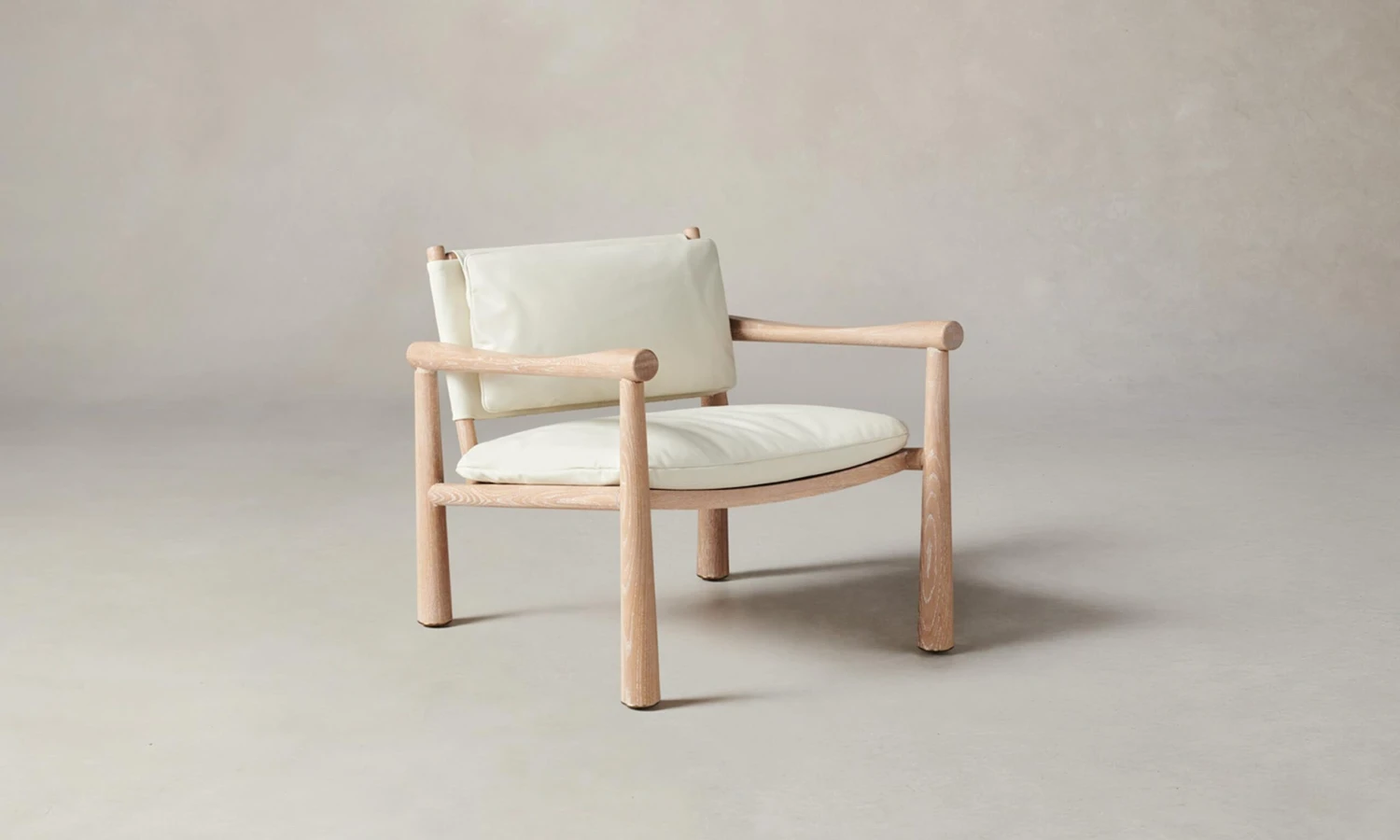 With decadent materials and details, the Hyde brings a contemporary allure to the classic 19th-century campaign chair. It has a cerused white oak frame, Italian leather seat, and aged brass accents that add a glimmer of opulence. Handcrafted at a family-owned workroom in upstate New York.