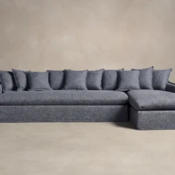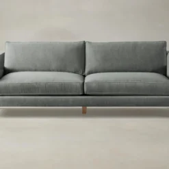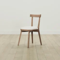 The Remsen chair’s bold proportions and streamlined silhouette are informed by Art Moderne design. It has a low-slung seat that sits at an angle atop a sculptural white oak base. Handcrafted in North Carolina.