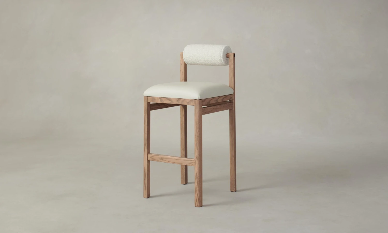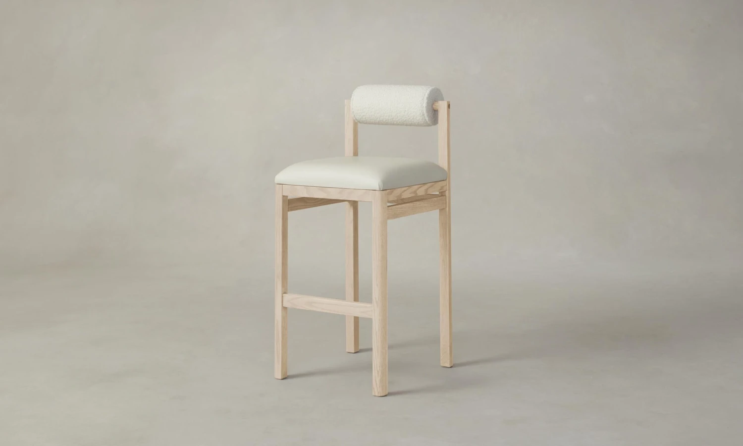The Thayer Bar & Counter Stool – Pebbled Leather Swan Seat Italian Bouclé White Bolster